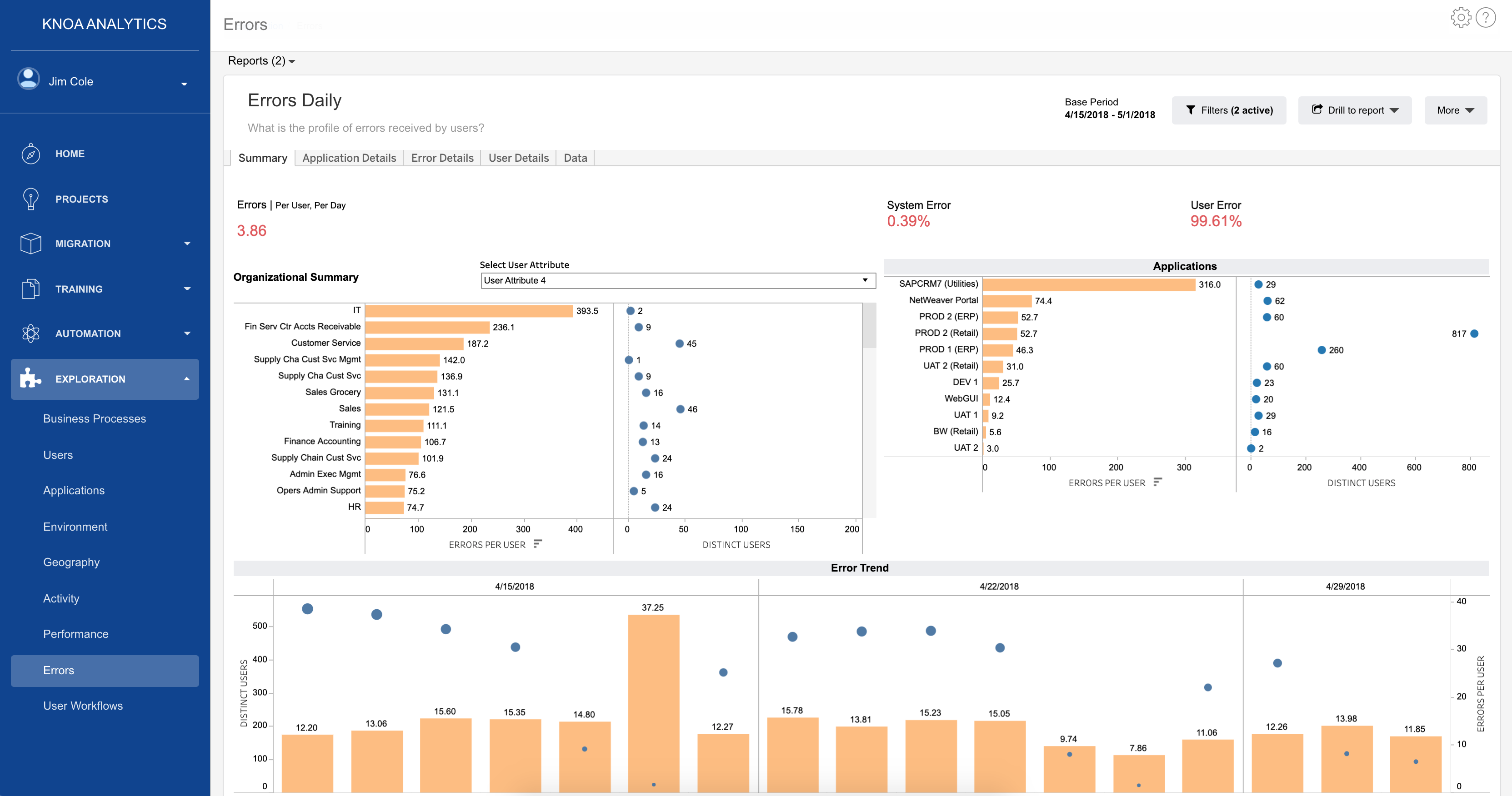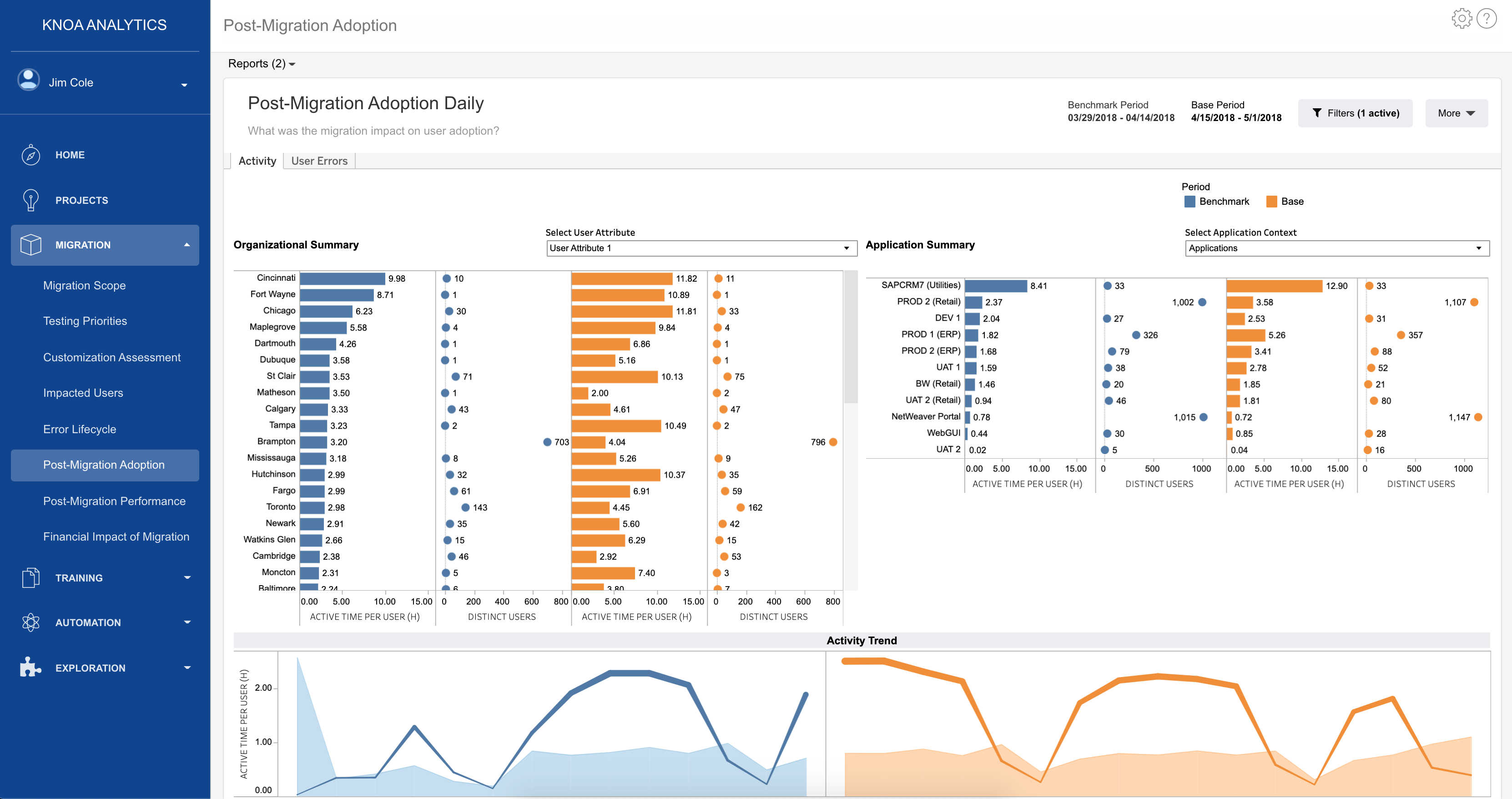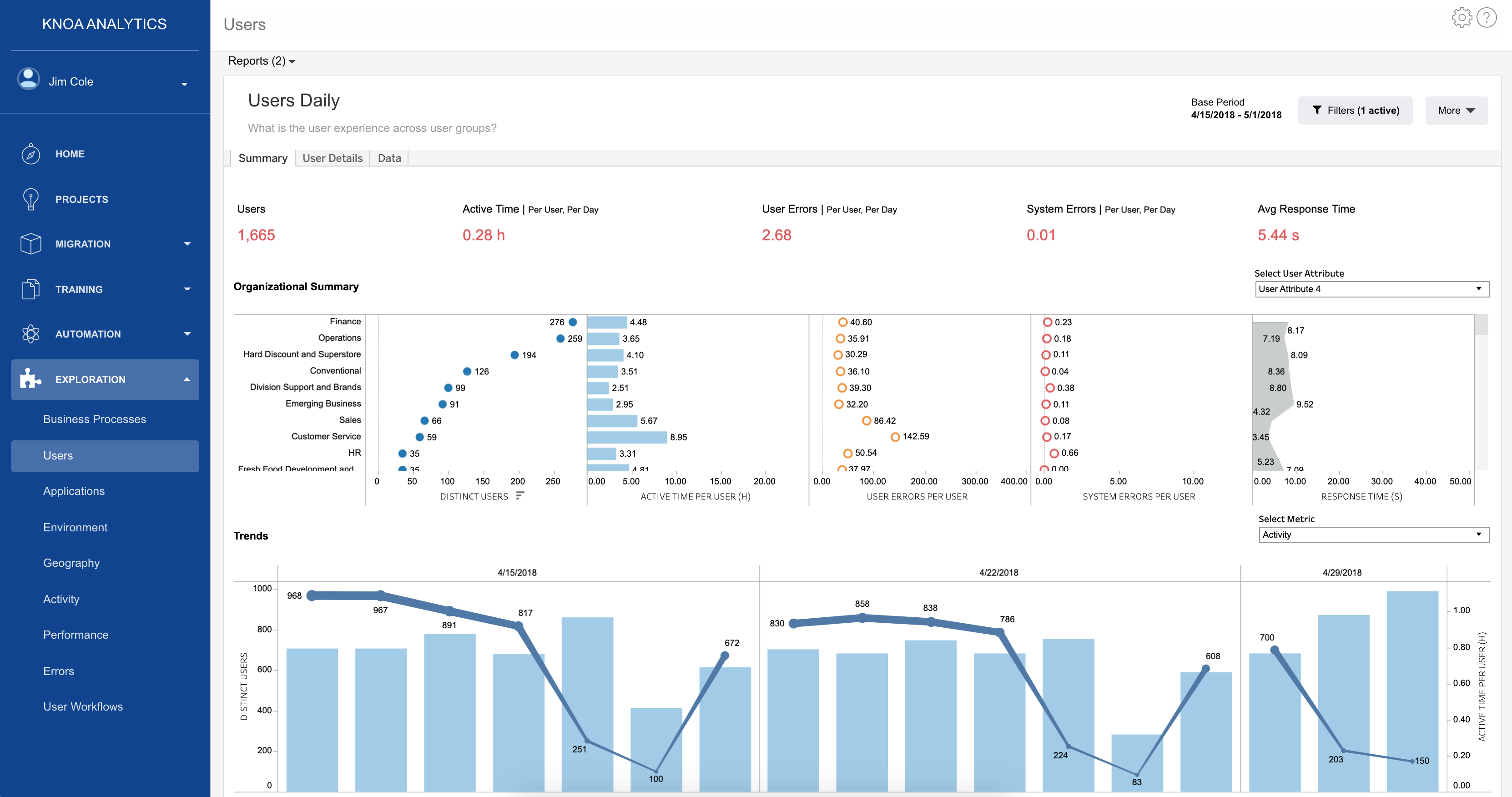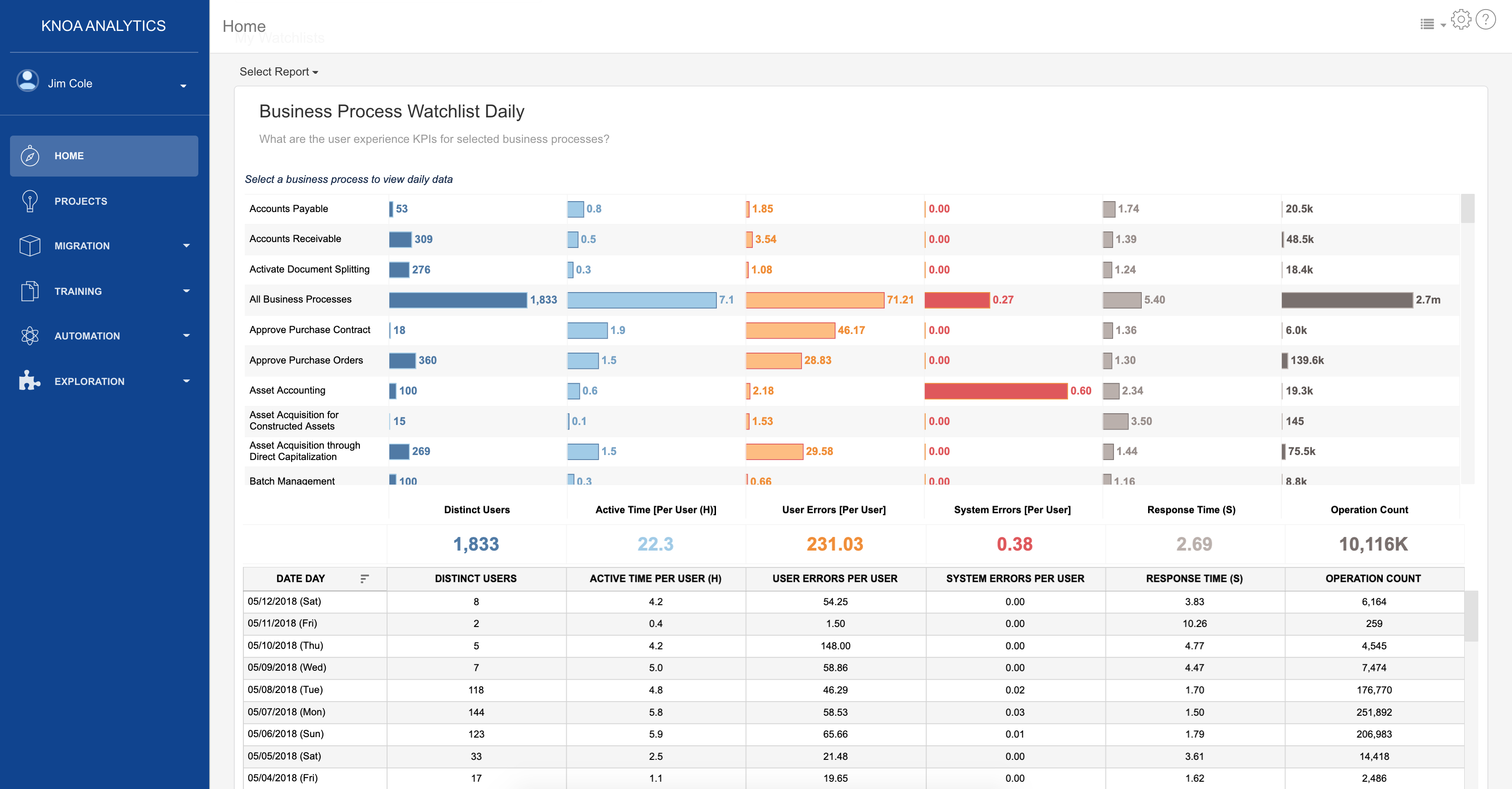 Application adoption is one of the key factors in maximizing return on software investments. Knoa Task Mining provides the visibility needed to measure true application adoption and user engagement, so companies can drive the most benefits from their IT assets.